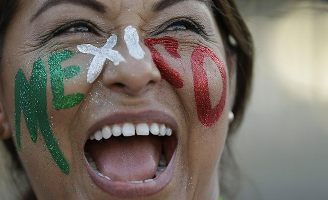 A fan from Mexico smiles as she lines up to enter Maracana Stadium ahead of the opening ceremony for the 2016 Summer Olympics in Rio de Janeiro, Brazil, Friday, Aug. 5, 2016. (AP)