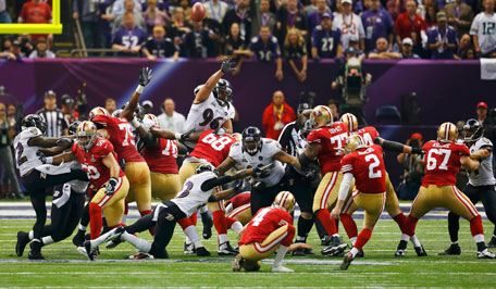 Play resumed with the 49ers unable to gain the needed yardage and forced to punt the ball back to Baltimore.
