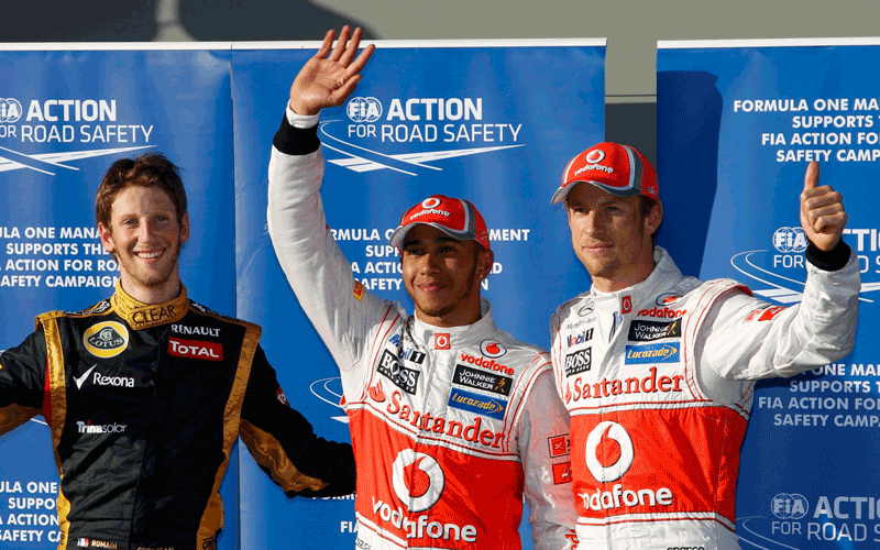In a thrilling finish to qualifying, Frenchman Romain Grosjean took third place for Lotus on his first appearance in Melbourne, pushing seven-time champion Michael Schumacher of Mercedes down to fourth.