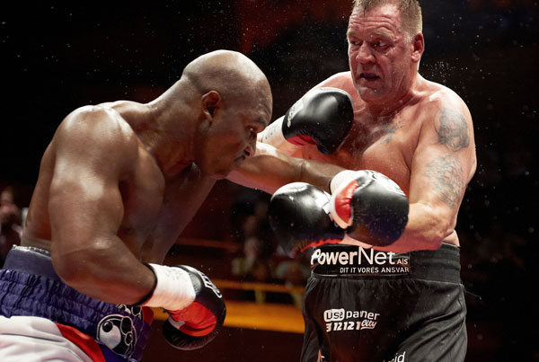 Evander Holyfield (left) of the US swings a left to Denmark's Brian Nielsen during their heavyweight boxing match in Copenhagen on Saturday. (AP)
