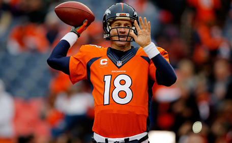 Peyton Manning of the Denver Broncos warms up prior to a 2015 AFC Divisional Playoff game against the Indianapolis Colts at Sports Authority Field at Mile High on January 11, 2015 in Denver, Colorado. (Getty Images)