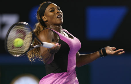 Serena Williams of USA plays a forehand in her first round match against Ashleigh Barty of Australia during day one of the 2014 Australian Open at Melbourne Park on January 13, 2014 in Melbourne, Australia. (GETTY)