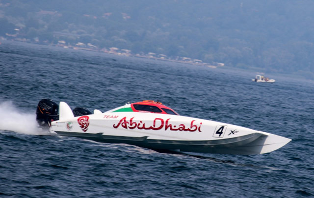 Torrente and Al Mansoori in Abu Dhabi 4 were third fastest (2.27.616) in the qualifying shootout on Lake Maggiore in Stresa today which saw Australians Tom Barry-Cotter and Ross Willaton in Maritimo (2.26.426) grab pole position.