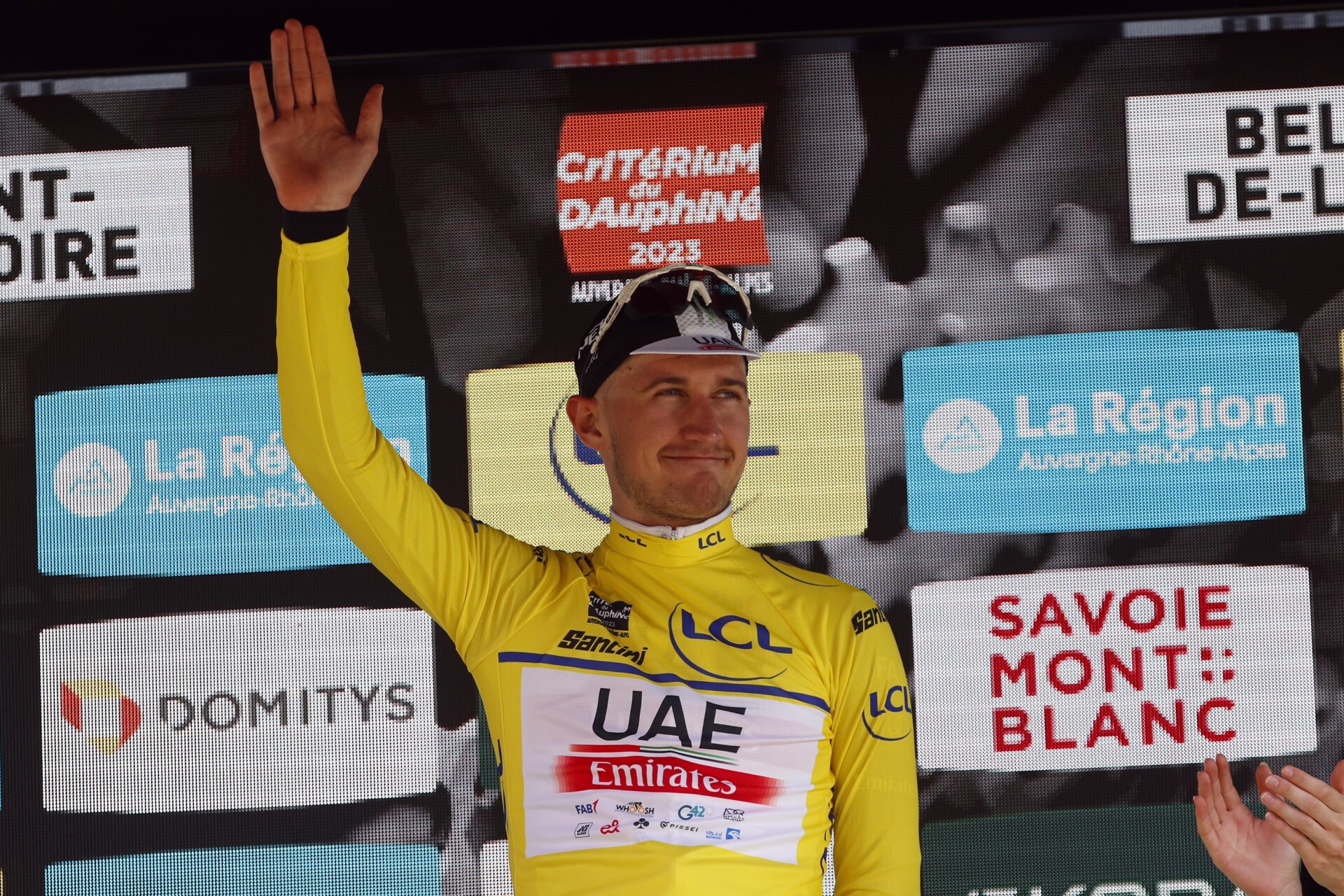 Mikkel Bjerg has taken the biggest result of his young career with a stage victory and yellow jersey on stage 4 of the Criterium du Dauphine in France.