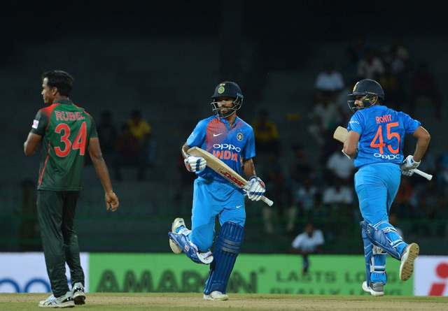 Paceman Rubel Hossain claimed two wickets and also ran Sharma out off his own bowling on the final ball of the innings.