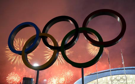 Fireworks explode over the Olympic park at the end of the Closing Ceremony of the Sochi Winter Olympics. (AFP)