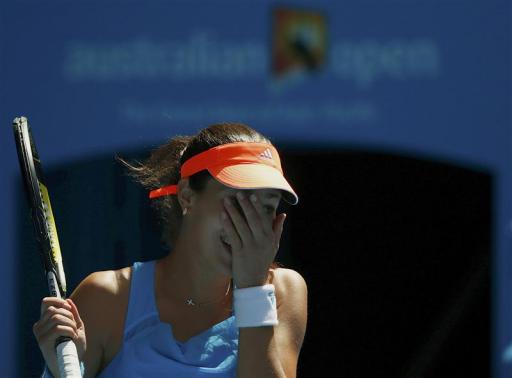 Ana Ivanovic of Serbia celebrates defeating Serena Williams of the United States in their women's singles match at the Australian Open 2014 tennis tournament in Melbourne January 19, 2014.(REUTERS)