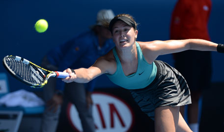 Eugenie Bouchard of Canada hits a return against Li Na of China during their women's singles semifinal on day 11 of the 2014 Australian Open tennis tournament in Melbourne on January 23, 2014. (AFP)