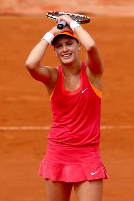 Eugenie Bouchard of Canada celebrates her win during her women's singles quarter-final match against Carla Suarez Navarro of Spain on day ten of the French Open at Roland Garros on June 3, 2014 in Paris, France. (GETTY)