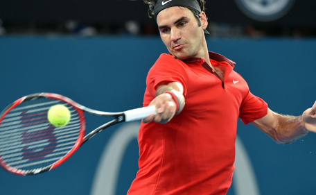 Rodger Federer of Switzerland hits a return against Grigor Dimitrov of Bulgaria during their men's singles semi-final match at the Brisbane International tennis tournament in Brisbane on January 10, 2015. (AFP)