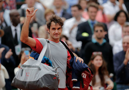 Roger Federer of Switzerland leaves the court after being defeated by Ernests Gulbis of Latvia in their men's singles match at the French Open tennis tournament at the Roland Garros stadium in Paris June 1, 2014. (REUTERS)