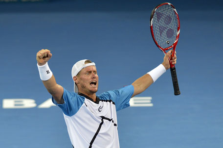 Lleyton Hewitt of Australia celebrates victory after winning his Men's finals against Roger Federer of Switzerland during day eight of the 2014 Brisbane International at Queensland Tennis Centre on January 5, 2014 in Brisbane, Australia. (GETTY)