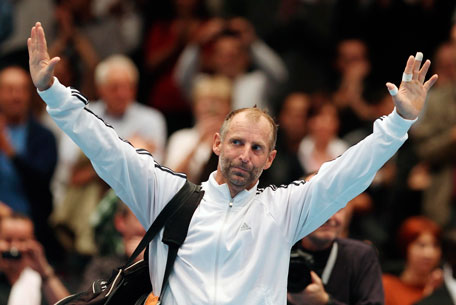 Muster bade farewell by throwing his racquet and towels into an appreciative crowd of home fans, who had entered and would exit to a standing ovation. The one-time toughest man in tennis at times looked overcome with the scene.