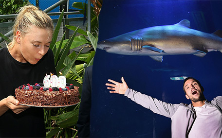 Viktor Troicki of Serbia poses with girlfriend Aleksandra Djordjevic at the Melbourne Aquarium during day five of the 2016 Australian Open at Melbourne Park. (Getty Images)