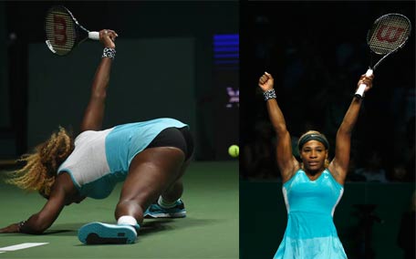 Serena Williams of the US reaches for a return against Ana Ivanovic of Serbia during the Women's Tennis Association (WTA) championships in Singapore. (AFP)