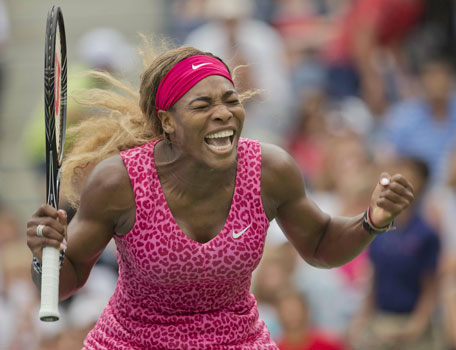 Serena Williams (USA) celebrates recording match point in her match against Varvara Lepchenko (USA) on day six of the 2014 U.S. Open tennis tournament at USTA Billie Jean King National Tennis Center. (AFP/ Susan Mullane-USA TODAY Sports)