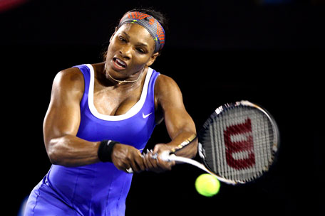 Serena Williams of the US plays a backhand in her first round match against Tamira Paszek of Austria on day two of the Australian Open at Melbourne Park on Tuesday in Australia. (GETTY)