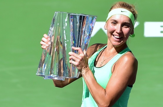 The triumph comes a year after Vesnina, 30, fell in the first round of qualifying at Indian Wells and capped a tournament that saw her down both Germany's soon-to-be number one Angelique Kerber and seven-time Grand Slam champion Venus Williams.