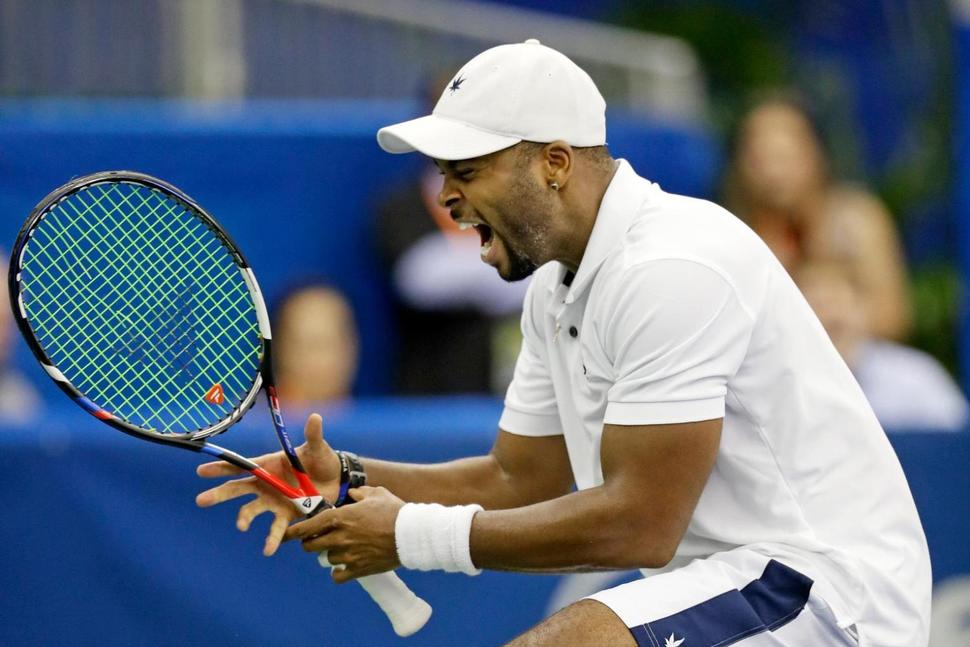 Donald Young celebrates after defeating John Isner in a quarterfinal at the Memphis Open tennis tournament Friday, Feb. 17, 2017. Pic: AFP