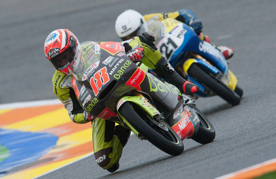 Nicolas Terol of Spain and Aspar Team displays a number 58 sticker on his helmet and bike in tribute to Italian rider Marco Simoncelli as he rounds a bend during the free practice of MotoGP of Valencia at Ricardo Tormo Circuit in Valencia, Spain. (GETTY/GALLO)