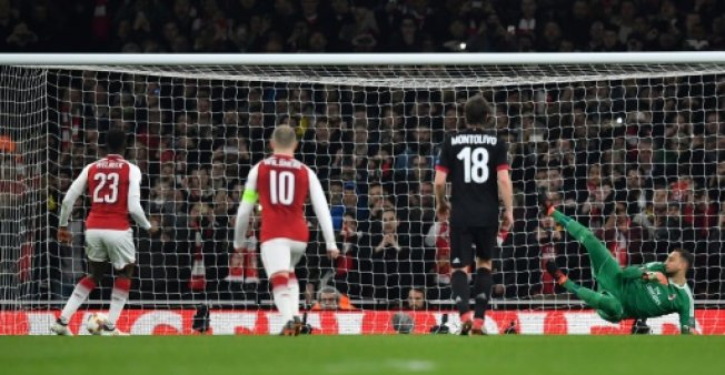 Danny Welbeck's controversial penalty and a Gianluigi Donnarumma howler helped Arsenal beat AC Milan in the Europa League last 16 on Thursday 5-1 on aggregate, while Borussia Dortmund slumped to a shock exit at the hands of Salzburg.