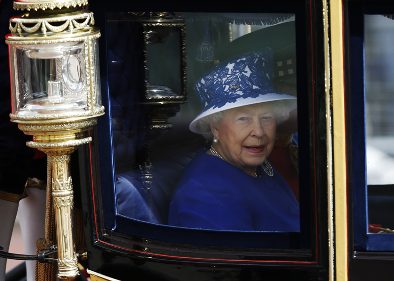 Britain's Queen Elizabeth leaves Buckingham Palace to travel to Horse Guards Parade for the Trooping the Colour ceremony in central London June 15, 2013. Trooping the Colour is a ceremony to honour the sovereign's official birthday. (REUTERS)