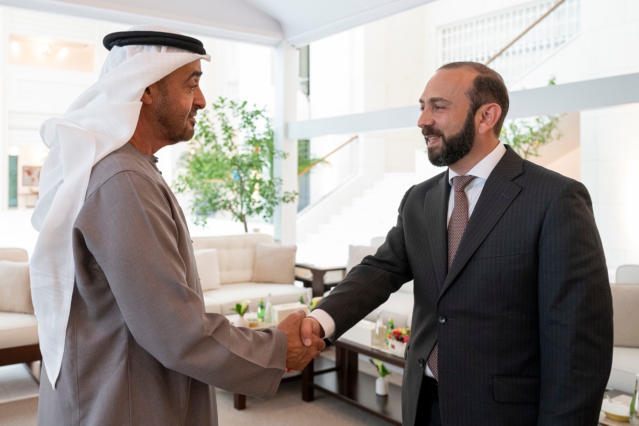During the meeting, at Qasr Al Shati in Abu Dhabi, Mirzoyan conveyed to His Highness the greetings of Vahagn Khachaturyan, President of Armenia, and his wishes for the continued progress and prosperity of the United Arab Emirates.
