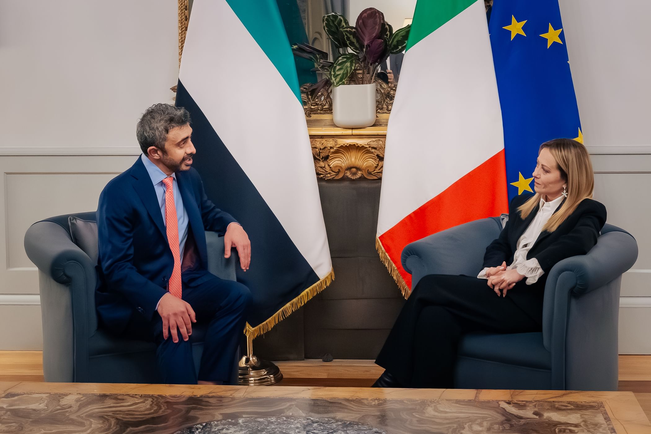 H.H. Sheikh Abdullah bin Zayed Al Nahyan, Deputy Prime Minister and Minister of Foreign Affairs, met with Giorgia Meloni, Prime Minister of the Italian Republic, during H.H.’s working visit to Rome.