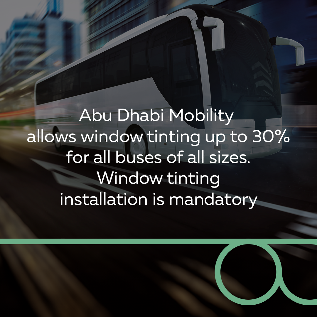 Additionally, a maximum of 30% window tinting is permitted on all Abu Dhabi buses, with the exception of the windscreen to ensure optimal driver visibility. The mandatory window tinting installation reinforces Abu Dhabi Mobility's dedication to providing a safe and comfortable travel environment for all bus passengers across the Emirate.