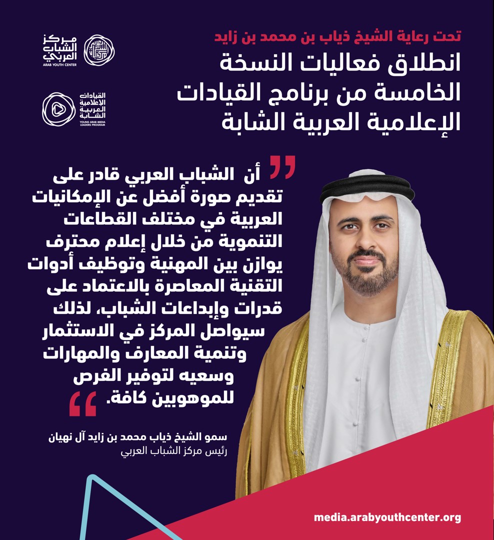 The Arab Youth Centre (AYC), under the patronage of its President H.H. Sheikh Theyab bin Mohamed bin Zayed Al Nahyan, launched the fifth edition of the Young Arab Media Leaders Program.