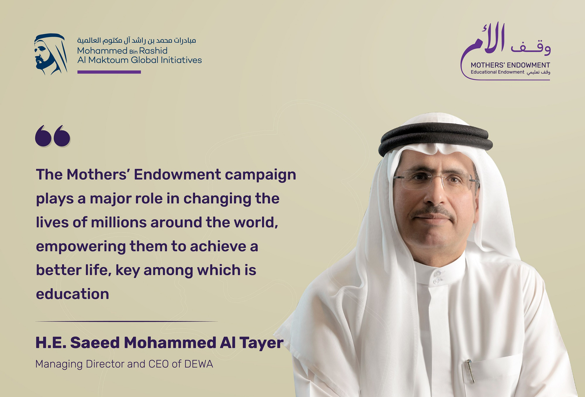 “DEWA is honored to support the Mothers’ Endowment campaign, which celebrates and acknowledges mothers’ sacrifices and selfless giving while building upon the success of previous Ramadan campaigns launched by Mohammed bin Rashid Al Maktoum Global Initiatives. This campaign will significantly reduce the suffering of millions resulting from the lack of quality education -a serious challenge facing the world and hindering the fulfillment of the 4th UN sustainable development goal for 2030- to ‘ensure inclusive and equitable quality education and promote lifelong learning opportunities for all’,” he added.