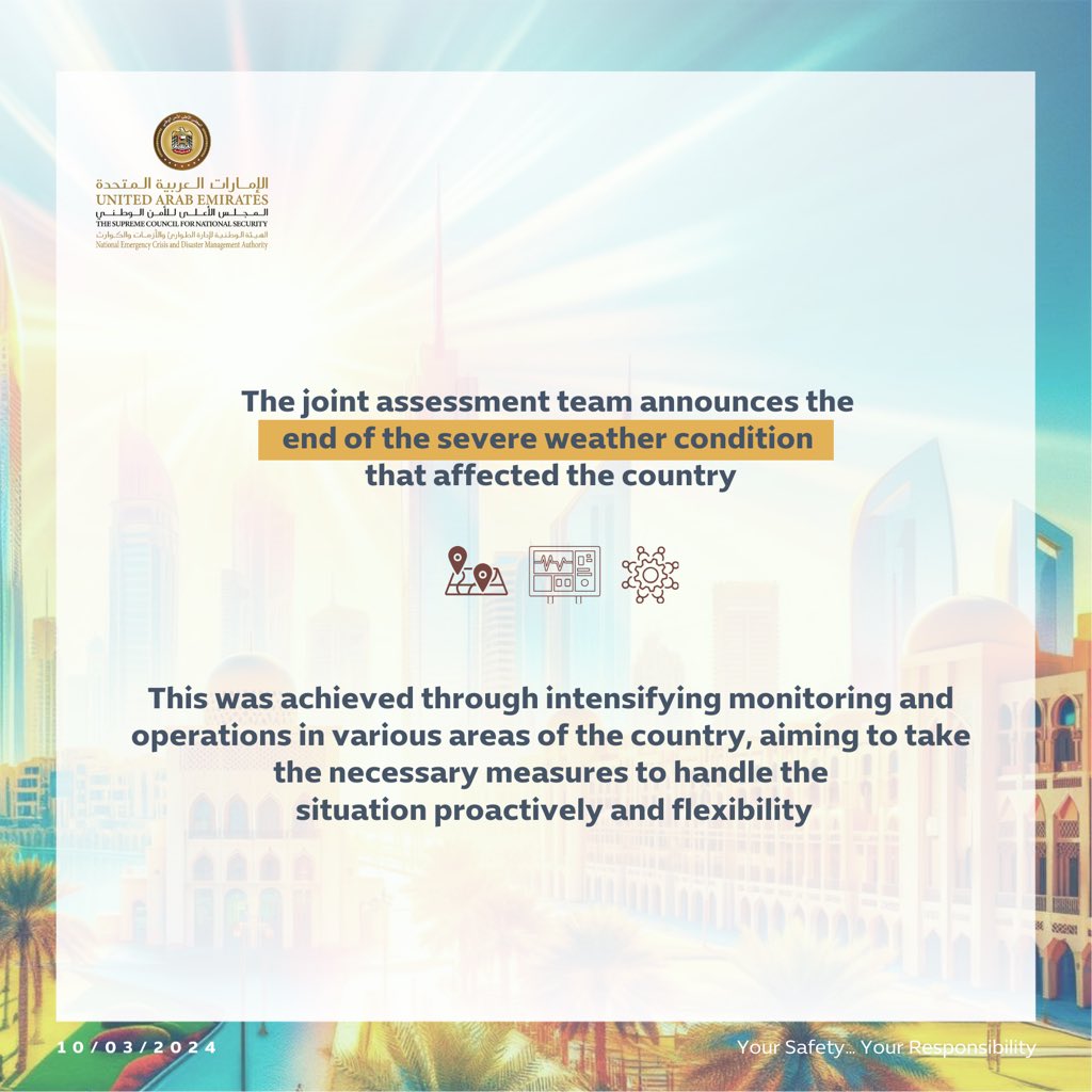 The joint assessment team announces the end of the severe weather condition and remains vigilant, continuing its monitoring efforts to implement suitable… pic.twitter.com/gYkR57rC5E