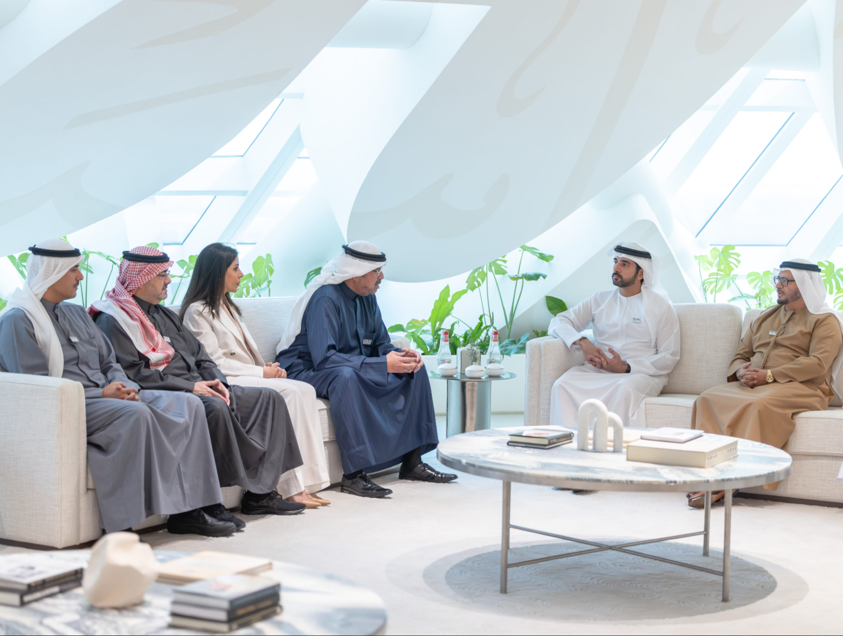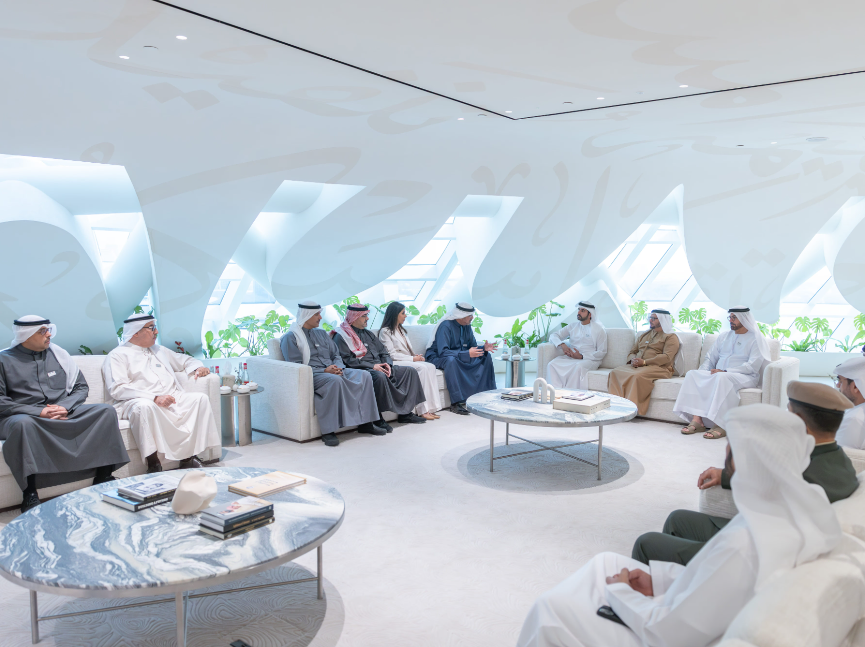 The meeting was attended by His Excellency Dr. Anwar Mohammed Gargash, Diplomatic Advisor to His Highness the President of the UAE; His Excellency Mohammed Abdullah Al Gergawi, Minister of Cabinet Affairs; His Excellency Omar Sultan Al Olama, Minister of State for Artificial Intelligence, Digital Economy and Remote Work Applications; His Excellency Suhail bin Mohammed Al Mazrouei, Minister of Energy and Infrastructure; His Excellency Dr. Ahmed Belhoul Al Falasi, Minister of Sports; and His Excellency Saeed Al Eter, Assistant Minister of Cabinet Affairs for Strategic Projects and Chairman of the UAE Government Media Office.
