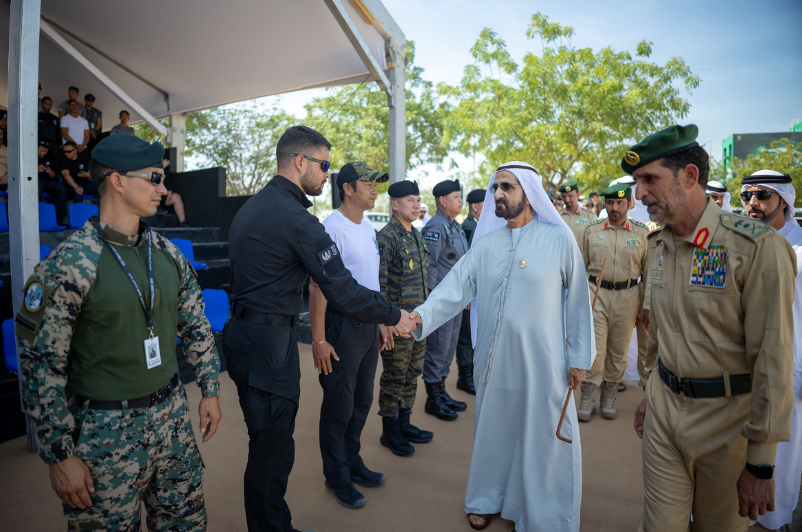 His Highness Sheikh Mohammed bin Rashid Al Maktoum, Vice President and Prime Minister of the UAE and Ruler of Dubai, attended the final day of competitions of the seventh UAE SWAT Challenge, held at the Al Ruwayyah training ground in Dubai.