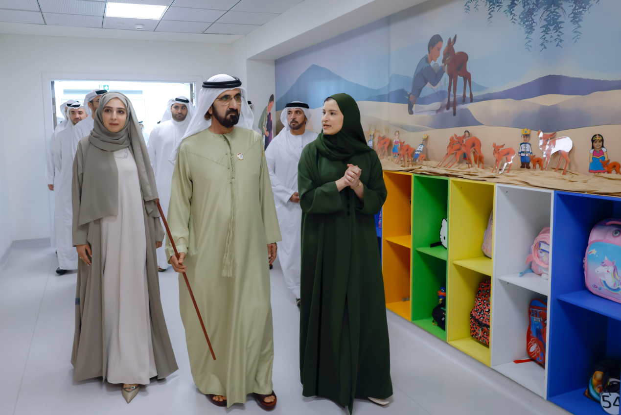 His Excellency Mohammad Abdullah Al Gergawi, Minister of Cabinet Affairs; Her Excellency Sarah bint Yousif Al Amiri, Minister of Education; and Her Excellency Hajer Ahmed Al Thehli, Secretary-General of the Education, Human Development and Community Development Council, accompanied HH Sheikh Mohammed on the visit.