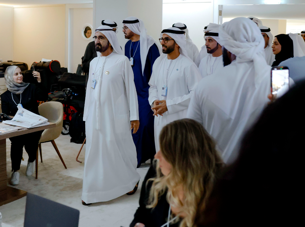 His Highness was also accompanied by His Highness Sheikh Mansoor bin Mohammed bin Rashid Al Maktoum, President of the UAE National Olympic Committee; His Highness Mohammed bin Rashid bin Mohammed bin Rashid Al Maktoum; His Excellency Mohammed Al Gergawi, Minister of Cabinet Affairs and Chairman of the World Governments Summit; and a number of senior officials.
