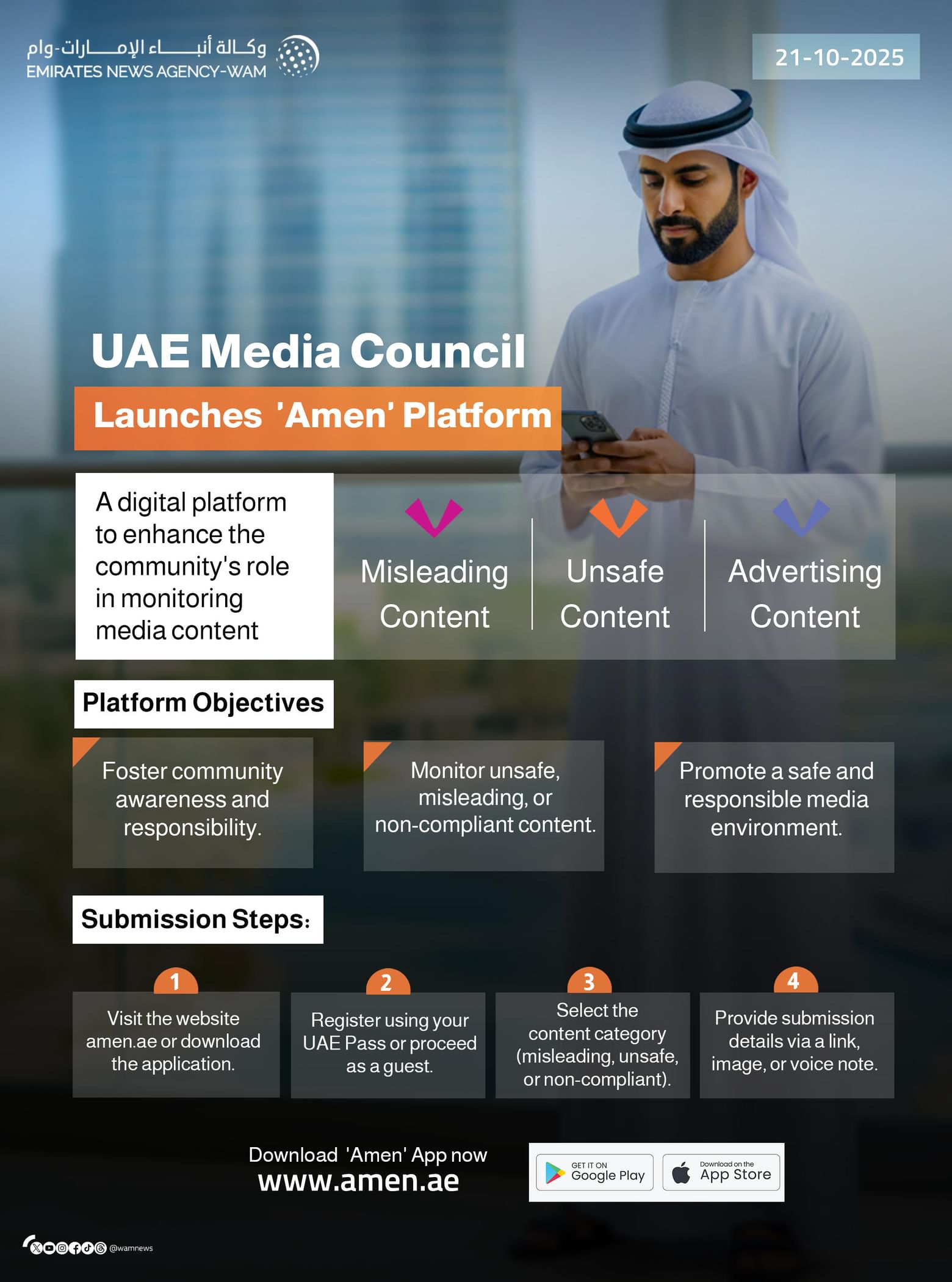 By enabling open dialogue, Amen enhances content quality while safeguarding the UAE’s values, cultural integrity, and social cohesion. It empowers citizens and residents to actively shape a media landscape rooted in ethical standards, balanced reporting, and responsible expression.