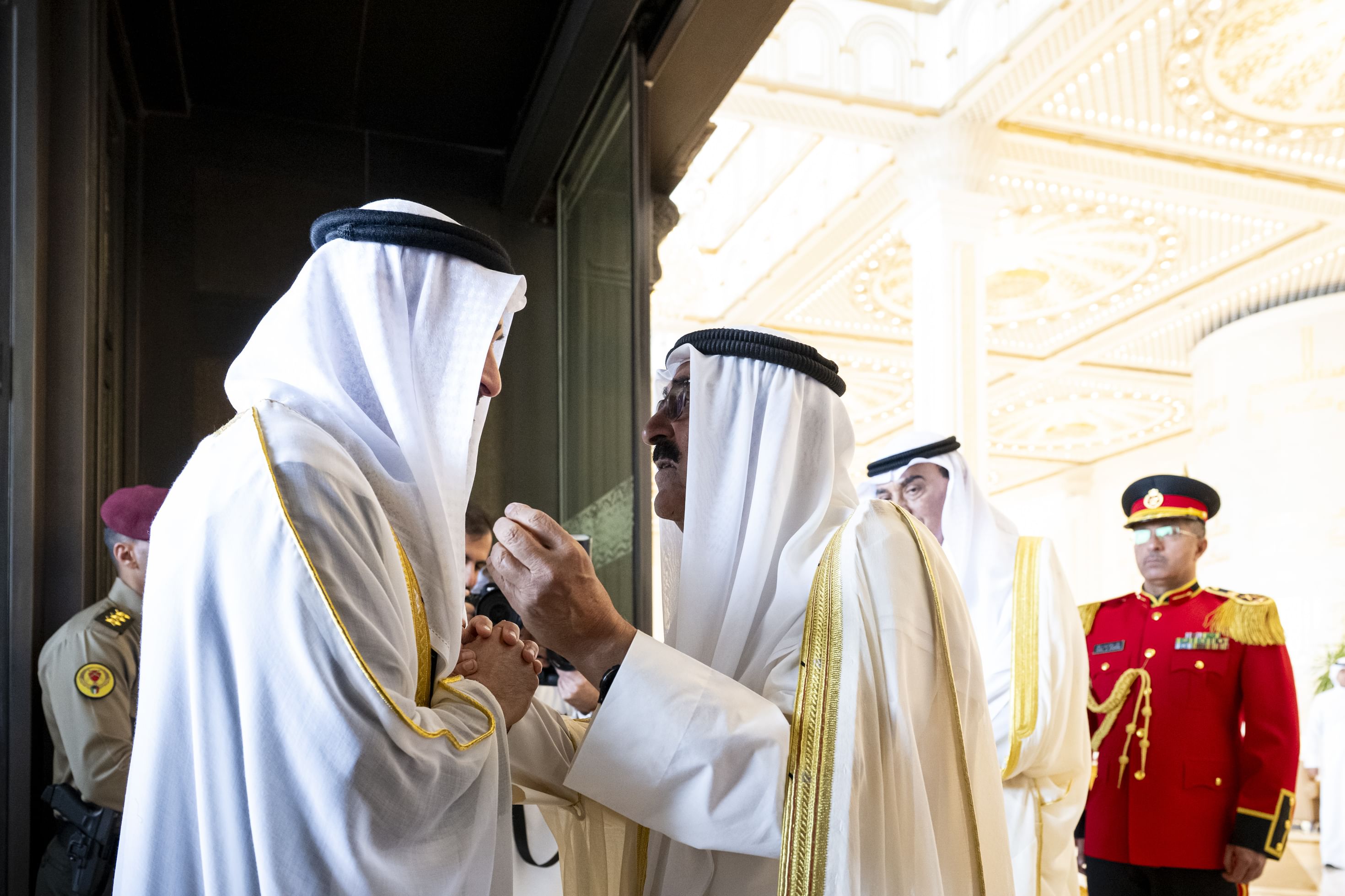 The Emir of Kuwait welcomed His Highness Sheikh Mohamed bin Zayed, with the two leaders exchanging warm greetings reflecting the close ties between their nations and peoples.