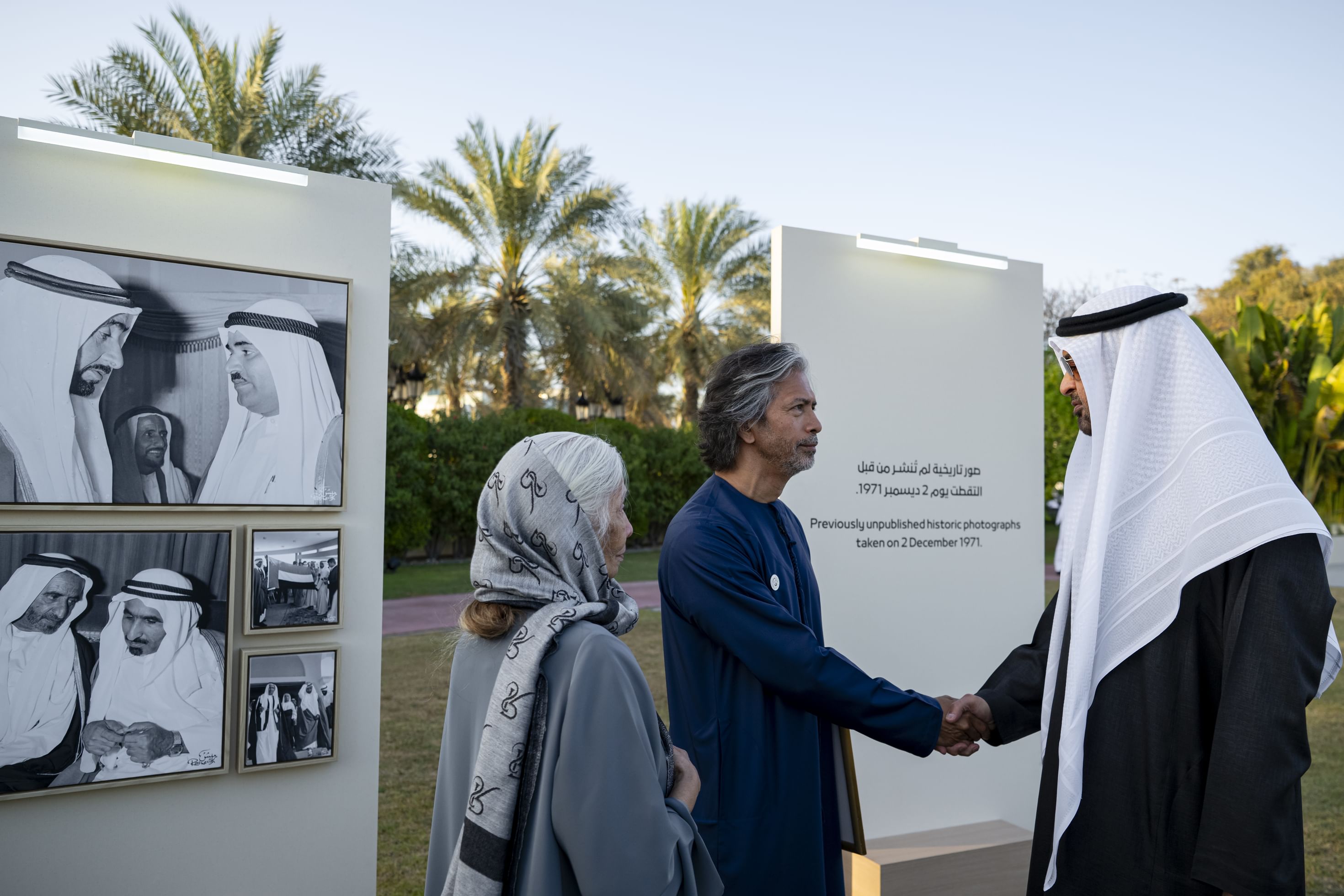 His Highness also viewed a collection of more than 60 rare and previously unpublished photographs documenting historic scenes from the day the Union was formed and the flag of the United Arab Emirates was raised for the first time on 2 December 1971 at Union House in Dubai.