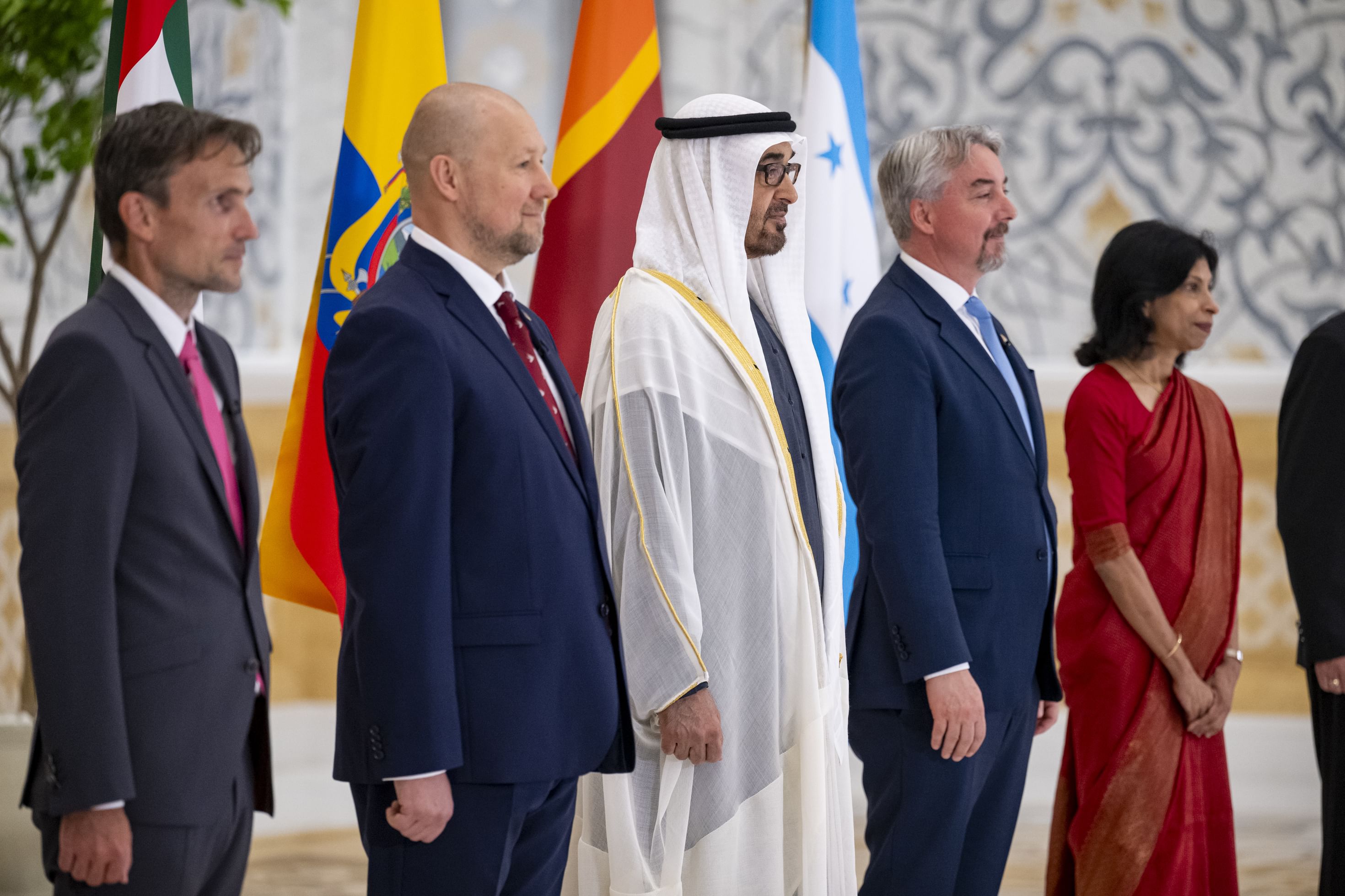 His Highness also received the credentials of several newly appointed ambassadors to the UAE, during an official reception held at Qasr Al Watan in Abu Dhabi.