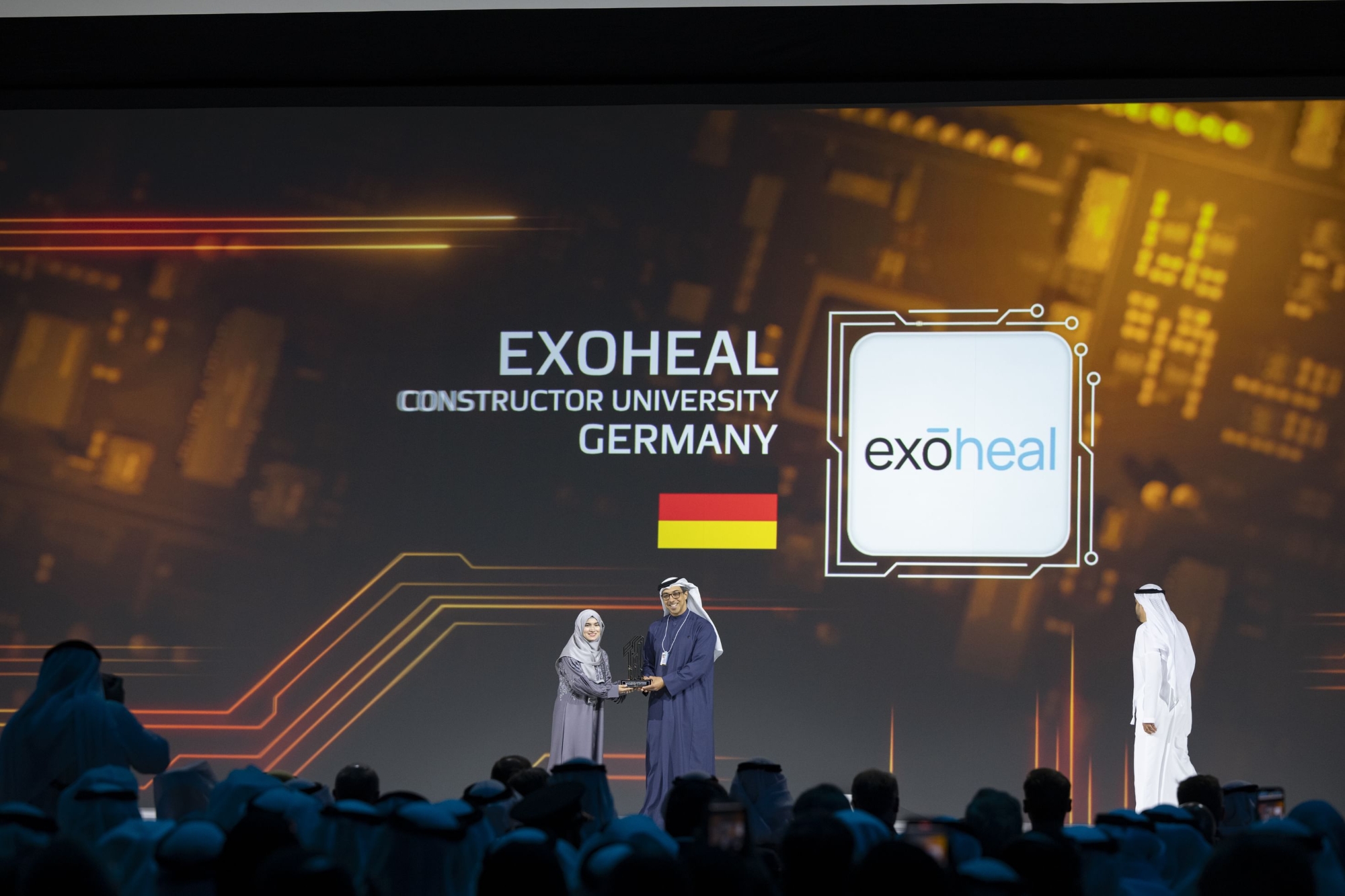 Sheikh Mansour awarded the Gold Prize to ExoHeal from Constructor University, Germany, for its AI-driven rehabilitation system that assists stroke survivors and individuals with paralysis. The solution combines a robotic glove and machine learning algorithms to accelerate therapy by 50% while providing personalised treatment plans and gamified exercises to engage patients. The platform also allows doctors to monitor progress remotely and adjust treatment in real time, marking a revolutionary advancement in neurorehabilitation.