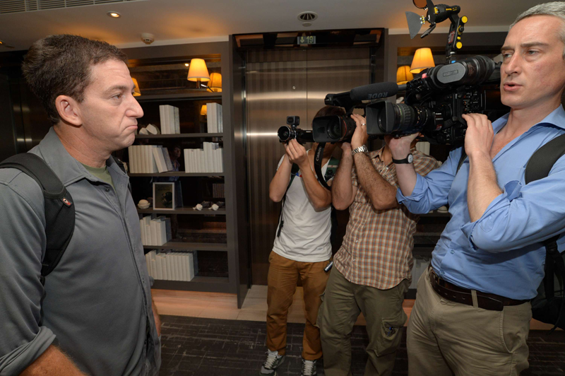 Guardian journalist Glenn Greenwald (L), who has interviewed former CIA employee Edward Snowden, leaves the hotel where Greenwald is staying, in Hong Kong June 10, 2013. Snowden, 29, has identified himself as the person who gave the Guardian and the Washington Post classified documents about how the U.S. National Security Agency (NSA) obtained data from U.S. telecom and Internet companies. Snowden's decision to flee to Hong Kong as he prepared to expose the U.S. government's secret surveillance programs may not save him from prosecution due to an extradition treaty in force since 1998. Greenwald, the lead author of the Guardian's surveillance stories, told the New York Times that he expects a U.S. investigation and upgraded the security measures on his computer in Brazil, where he lives, as a precaution. (REUTERS)