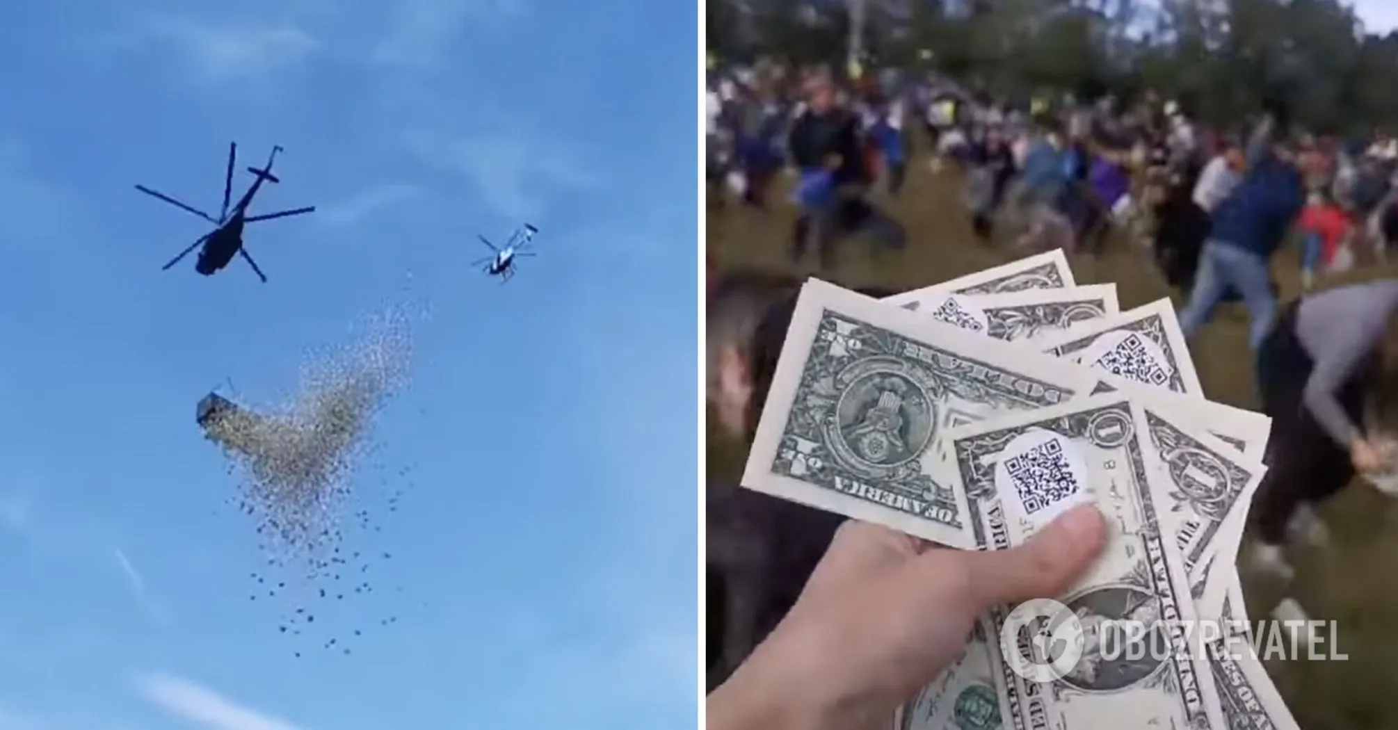 A TV star dropped around one million dollars from a helicopter over a large crowd of people in the Czech Republic.