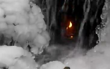 Scientific researchers claim this is a natural eternal flame behind a waterfall in western New York state. It is supposed to be one of a few hundred "natural" eternal flames around the world, fed by gas seeping to the Earth's surface from underground. This flame is believed to have perhaps been llit by Native Americans hundreds or thousands of years ago.