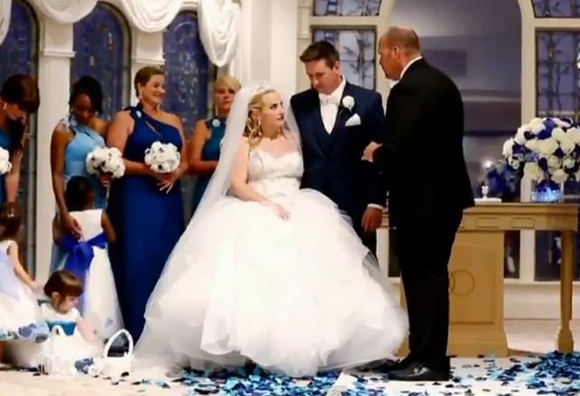 She defied her doctors and traversed 63 feet to meet her now-husband Rob Dietrich at the altar.