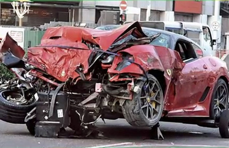 Amazingly, the passenger in the Ferrari and another person on a motorcycle survived.