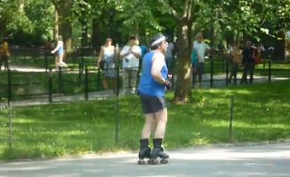 Get ya groove on: Central Park cool cat rollerblading... fail