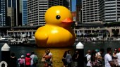 A gigantic, bright yellow rubber duck floats into Sydney's Darling Harbour as part of the Australian city's annual arts festival, a celebration where high-art meets popular entertainment.