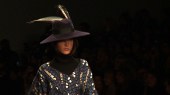Brazilian-born designer Issa presents her new Native American-inspired collection, full of feathers and prints, at London Fashion Week.