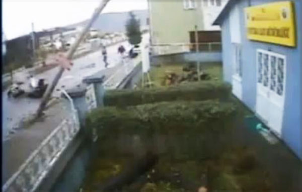 The video shows a car crashing into a pole, breaking into two pieces but all the three inside the car survived.